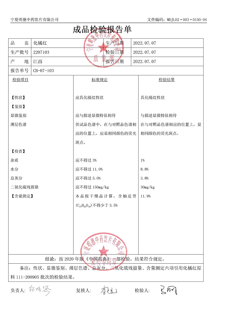 2207103化橘紅